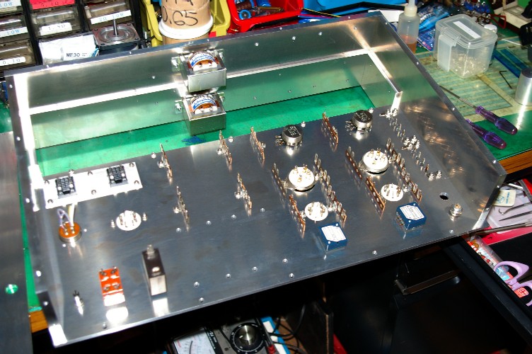 トランスの結線も終り、シャシへ部品が全部付き、これから配線に掛かれます。