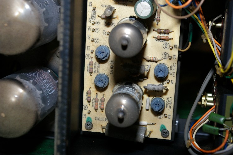 VR204はプッシュブルの両真空管の電流値を決め、そのバランスはVR203で調整します。