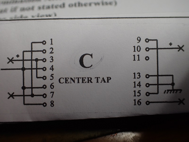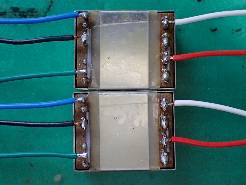 此のトランスは1次側に四組、二次側に二組のコイルが巻いて有り、その組み合わせで色々な昇圧比が選べるのですね。