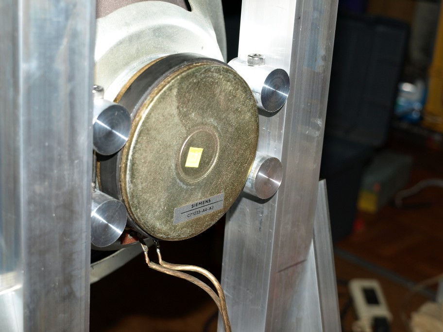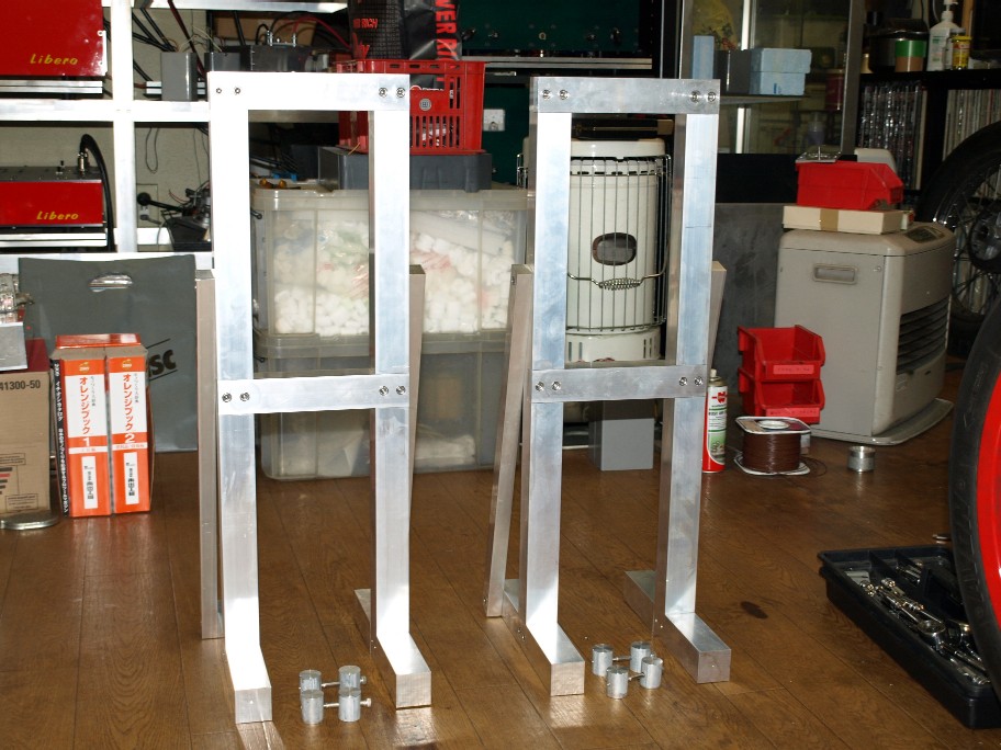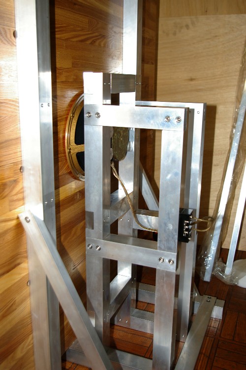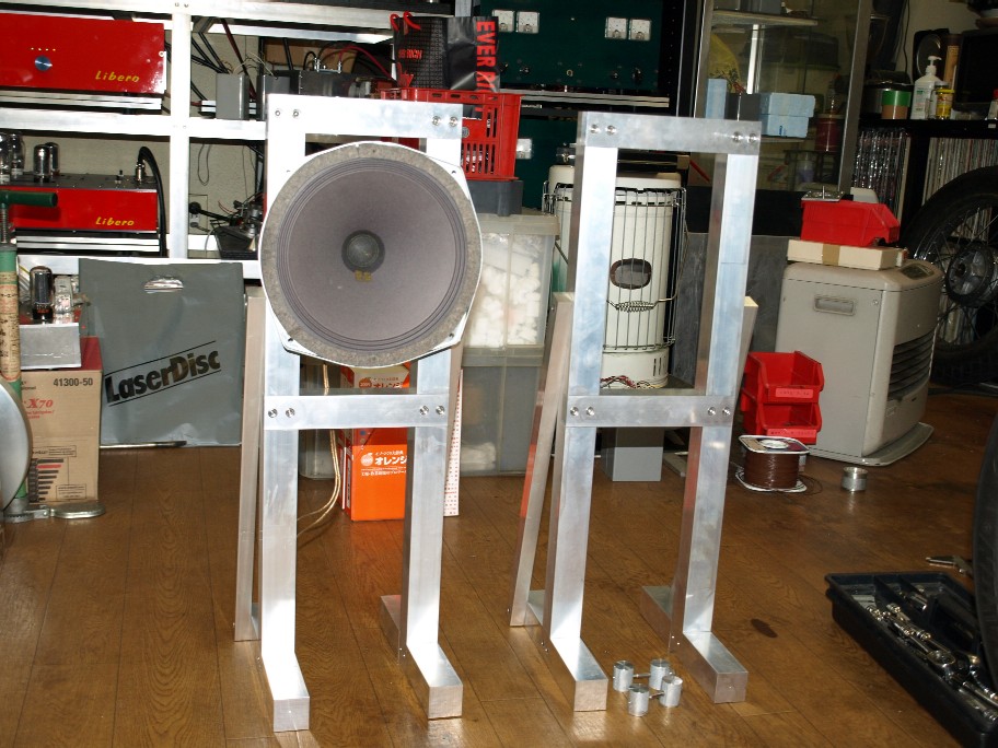 アルミの40mm角材で作っています。ユニットの振動エネルギーはとても大きい。其れを支えるのですから、此れでもやり過ぎとは思っていません。
