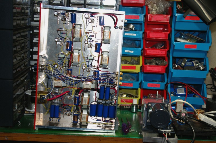 只今鋭意製作中の3台目(4台目は僕の、笑)。チョイ疲れた。本当にアンプの内部配線は疲れます。