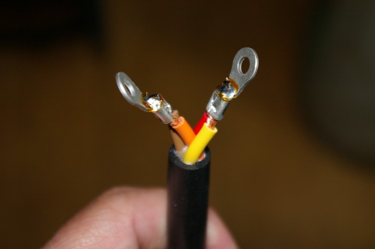 今日は、明日納めるアンプの電源コードの作成。