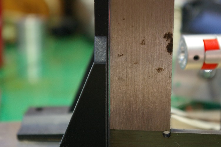 メーカー純正のモーターブラケットの精度(直角度)のチェックです。