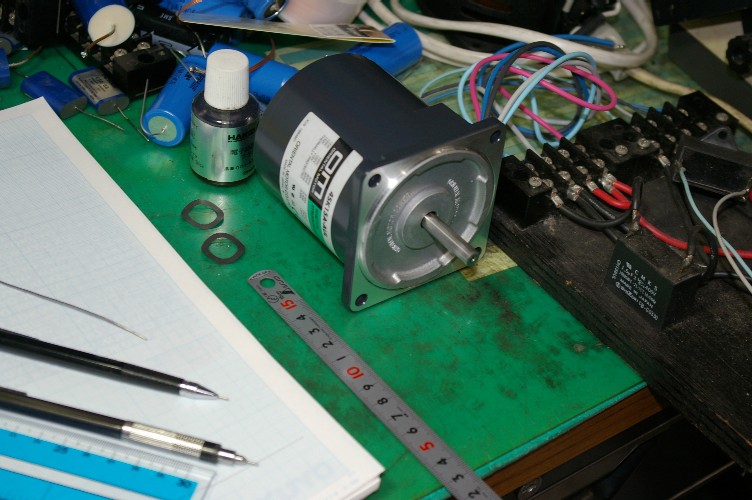 ベアリングノイズが出なくなったら、モーター本体の振動が気に成って来た。AC振動かとも思って回転中のシャフトを手で押さえて回転停止。