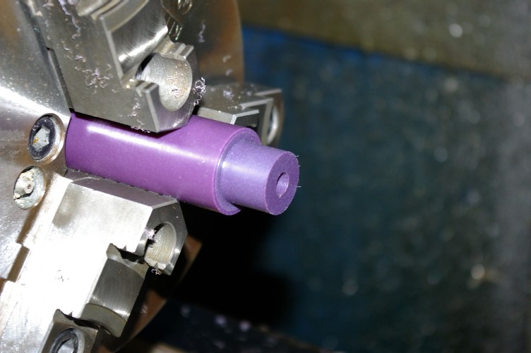 材料のMCナイロン。育つんですね。吸湿性が原因と思うのですが、切削後に育つのです。つまり大きくなる。