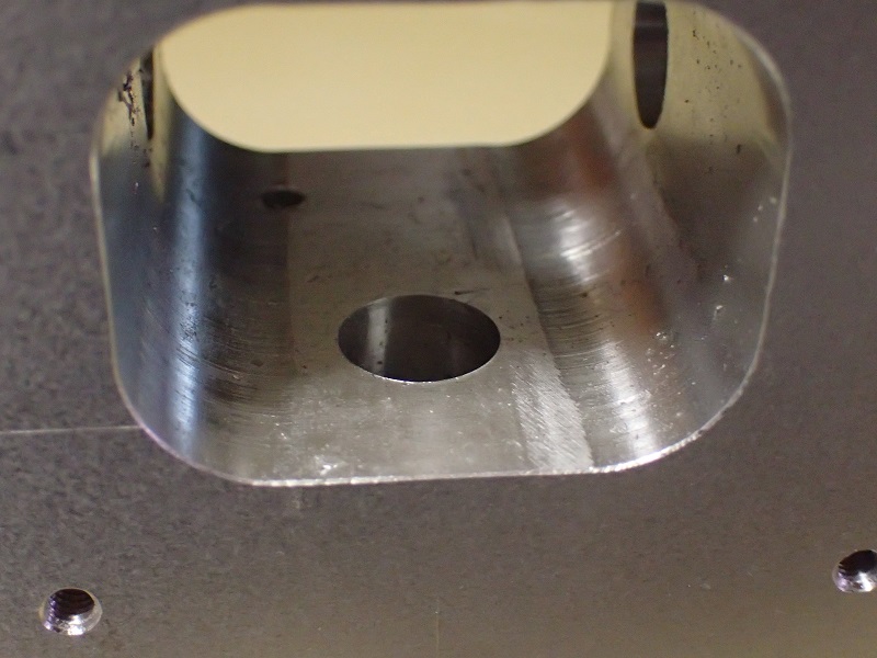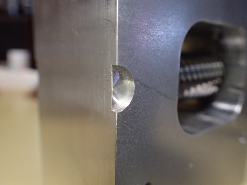 この穴、二段に成ってまして、内側は径が細くなっています。軸受けの外形に合わせて有るのです。