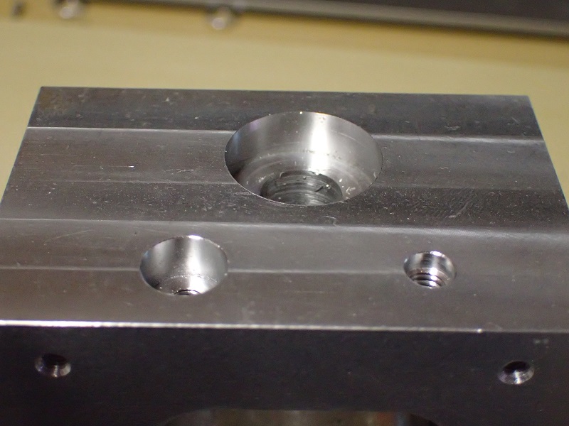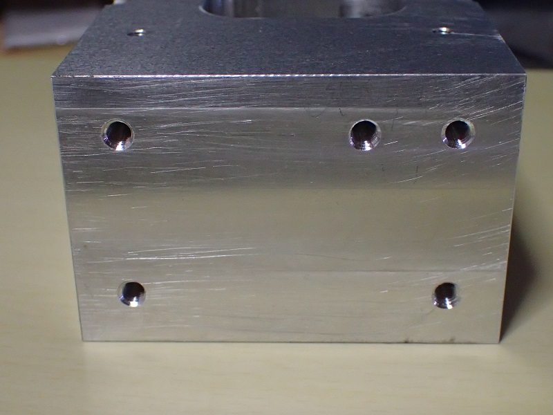 モーターと繋がる面の穴加工。出力シャフトの上側と同じ構造。