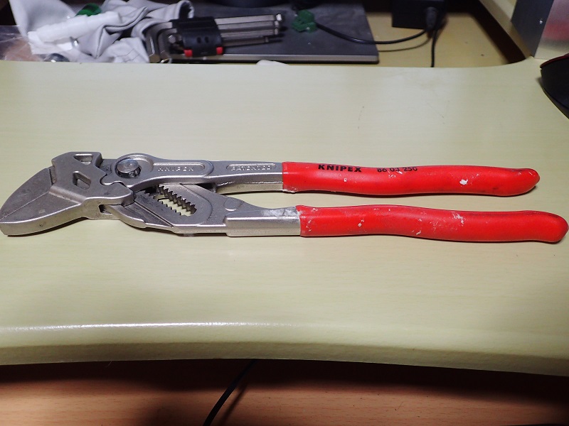 クニペックスの特殊プライヤー。こんな工具を持っているのも、バイク弄りの賜物。