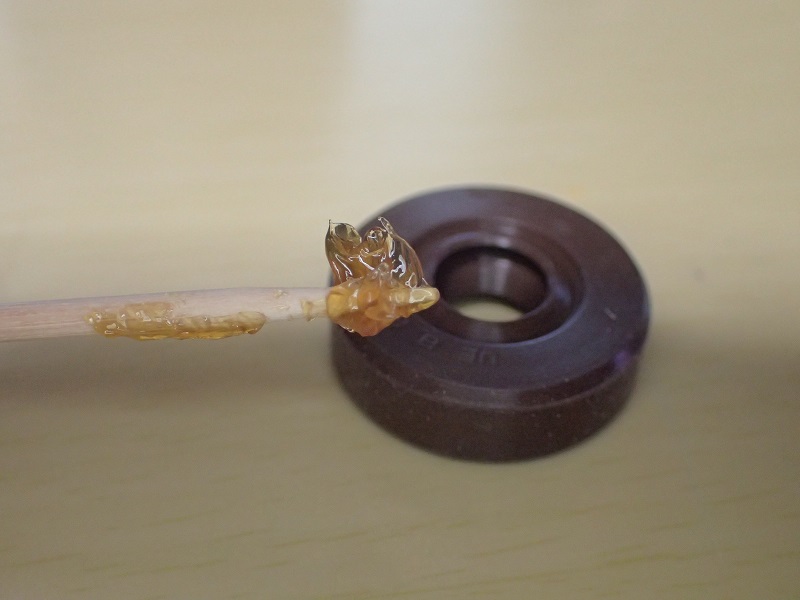 で、普通のオイルシールは真っ黒。こいつは若干の飴色。