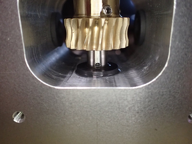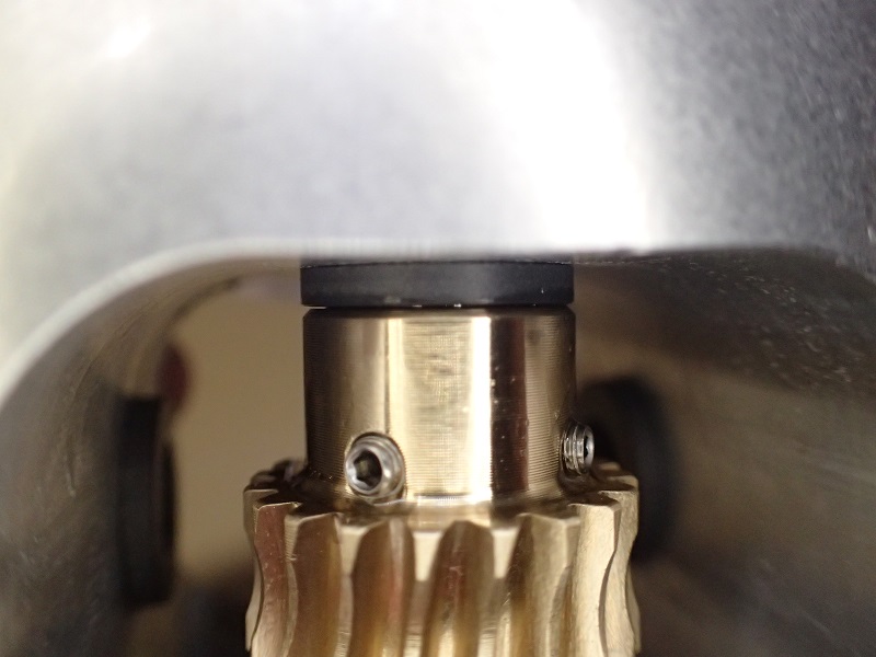 問題はこのフランジ部分とギヤ上面とのクリアランス。広過ぎるとギヤが踊り回転ムラに成ります。狭過ぎるとフリクションが増大。