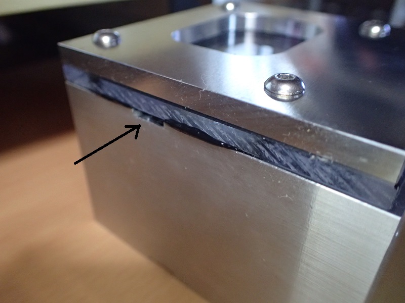 その対策として、アクリルの外側に5mm厚のアルミ板を当てました。