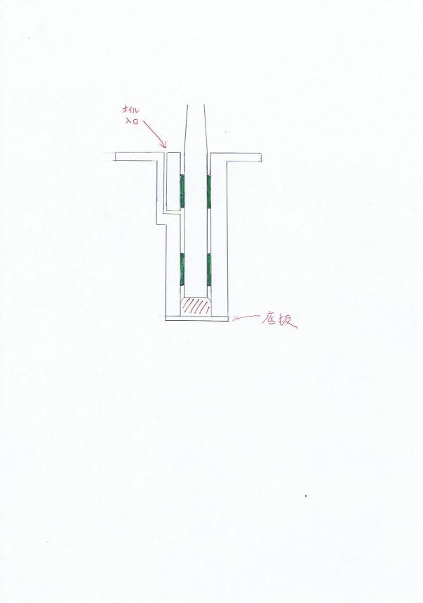 つまり、中の空気が邪魔をして、オイルは入り口でストップ。
