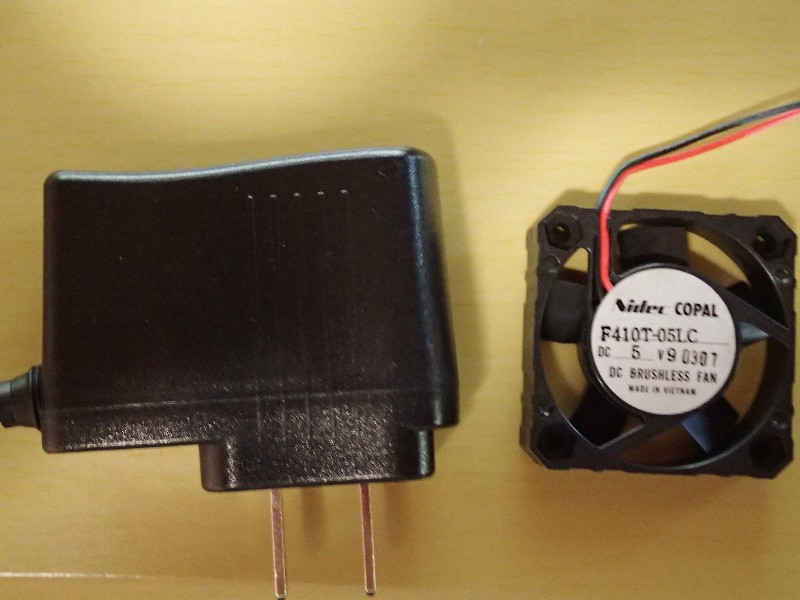 昨日入手した冷却ファンとACアダプター。真空管の直ぐ傍に設置しますのでACモーターは厳禁。