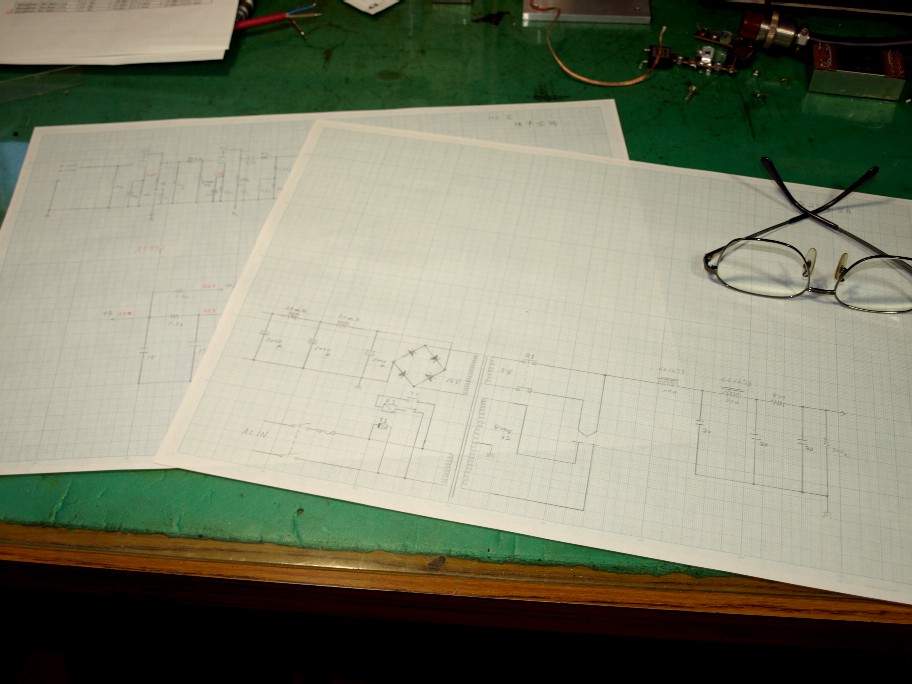 プリアンプの回路図が広がっています。