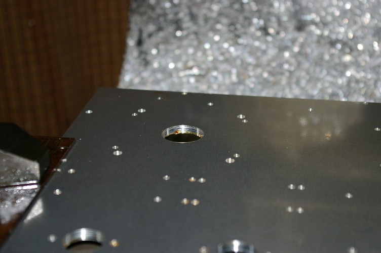 左奥の大きめの穴がA電源用のトランスを付ける穴。