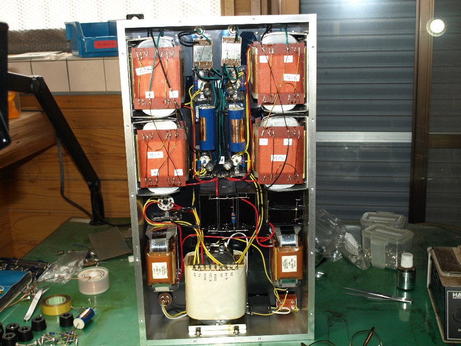 作業台の上にはパワーアンプ(チャンデバとして作ったんですけど・・汗)。