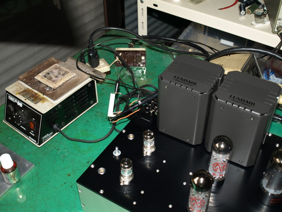 僕のアンプは、新しいノウハウが見つかった時に改造で戻ってくるのが多いので、パーツの外し易さって大事なのです。苦労するのは僕ですから・・・・・・・。