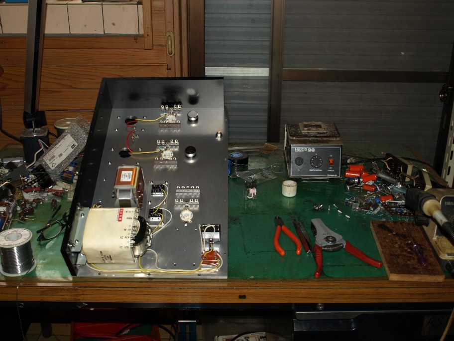 パワーアンプの製作に一生懸命。