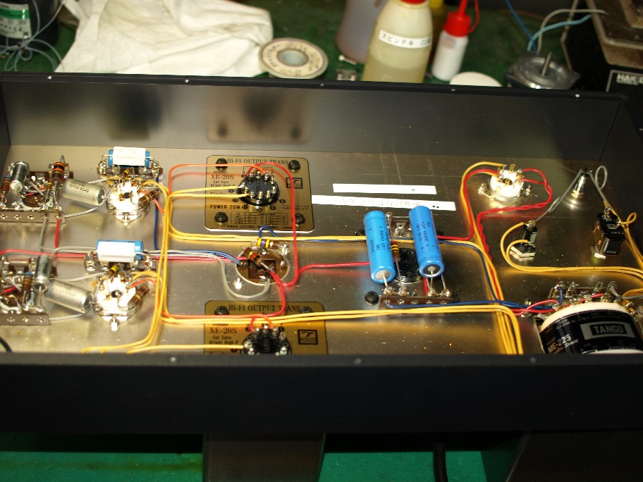 このアンプ、パーツが綺麗だし半田もピカピカ光っている。