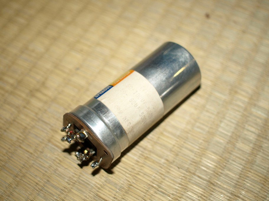 2個コンデンサーの入っているブロックケミコン。片側は正常でしたけどもう一方の容量、2pF。