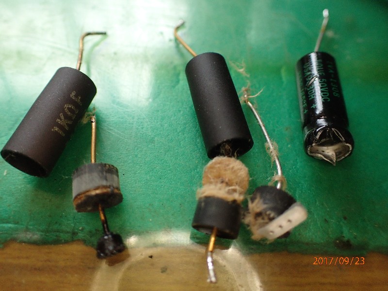 EL34が暴走してカソードに入っているバイアス抵抗とパスコンを破壊したのです。