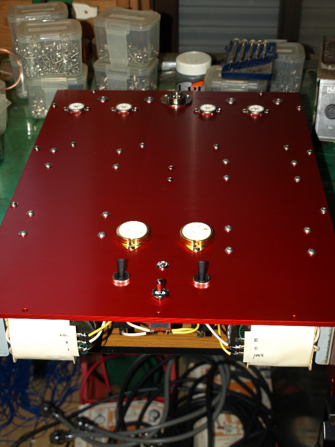 で、遂に表面の取り付け(傷を付けたくないので最後にしました。取り付けちゃうと電源トランスの配線が出来ない・・・。と言う理由も有るのですが・・・)。