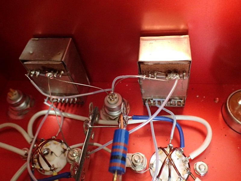 二次側を其々の真空管に繋ぎますが、片側だけ逆接続にするんですね。