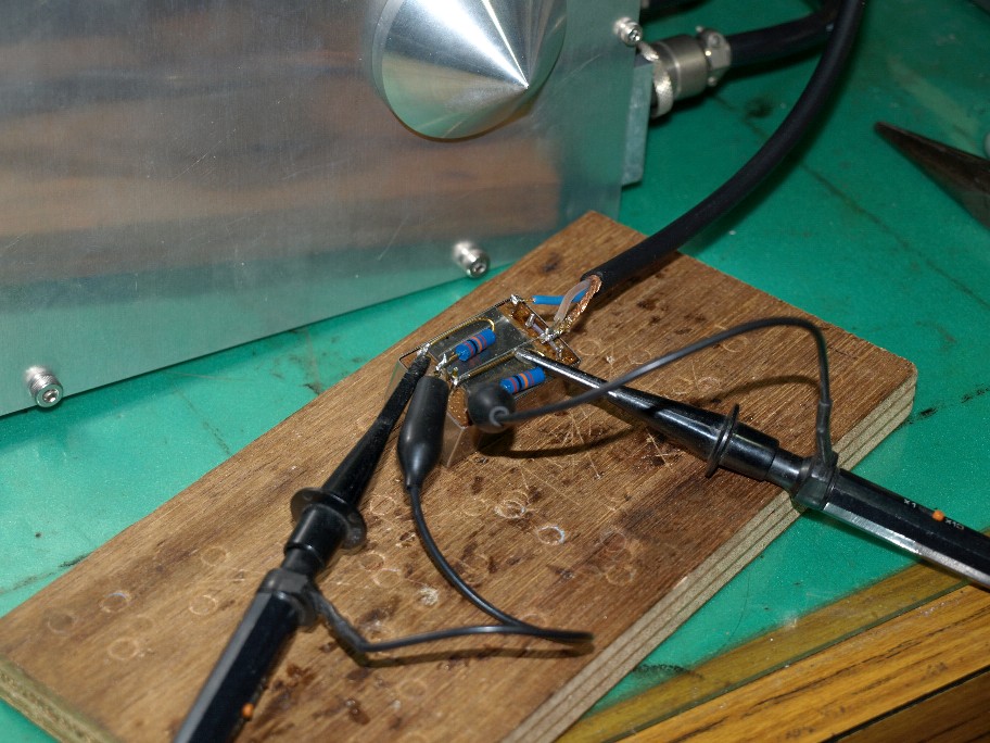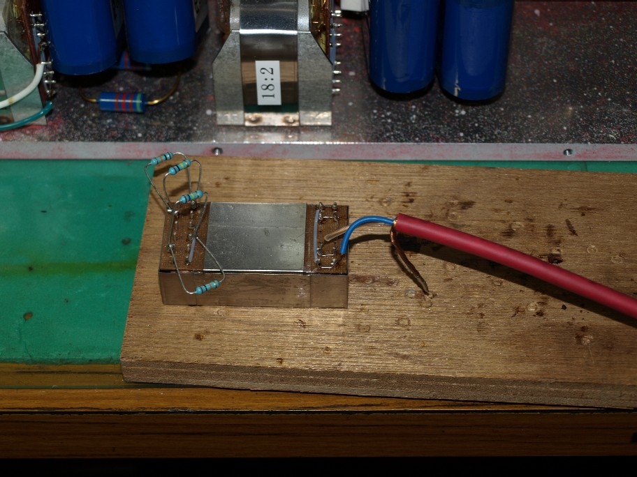 何種類もの抵抗を半田付け。一番良い物をチョイス。