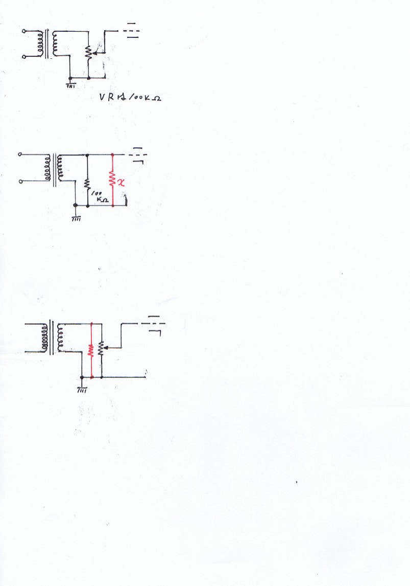 今回、パワーアンプの入力トランスの二次側には100kΩのVRが入っています。