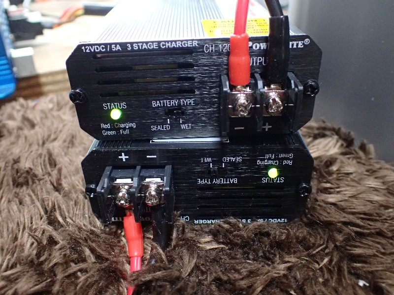 愛用の充電器。バッテリーがフル充電に成ると自動的にフロート充電(自己放電を補充する程度の微弱電流充電)に変わります。
