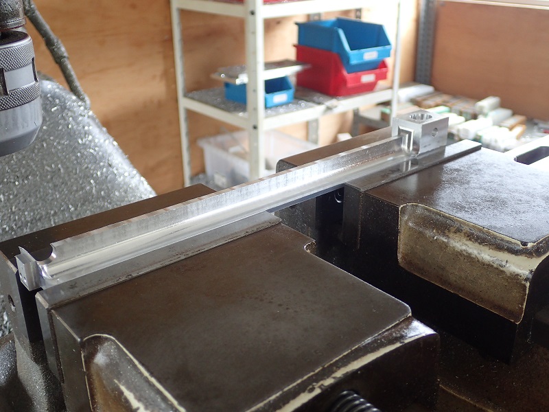 只今のフライス盤の上。アーム本体の切削中。何せ気を使います。一瞬のミスが数日の努力を無かった事に・・・・(何度も経験、涙)。