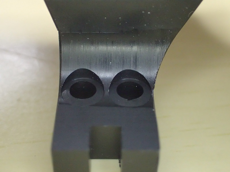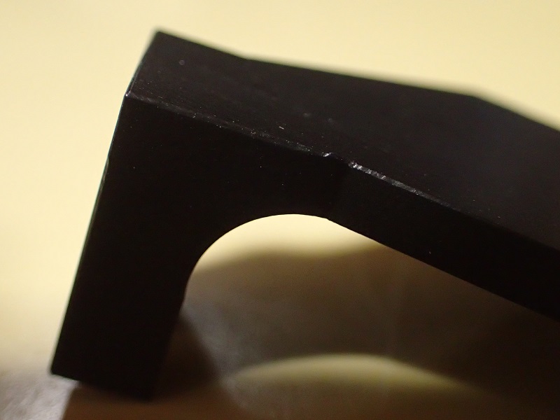 で、問題。高さが低く成ったので、アーム本体との結合ビス穴がアール部分に掛かってしまった・・・・(汗)。