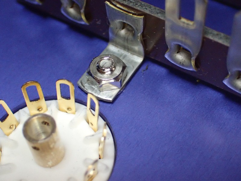 真空管ソケット取り付けネジに取り付けられているラグ板。