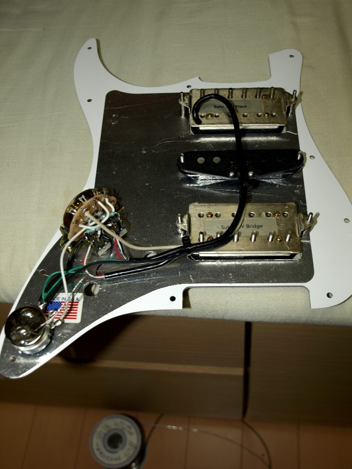 SSS配置をHSH配置にします。更にハムはSW一つでタップ配線への変更が出来る様にします(あるHPでタップとシングルのハーフトーンが美しいって書いて有りましたので)。