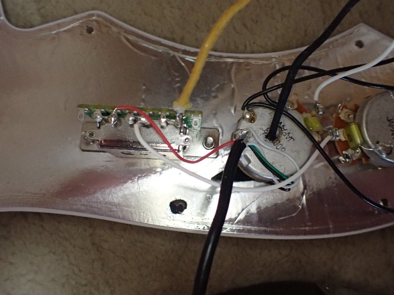 ハムバッカーからは4本の配線と、シールドの合計5本の配線。