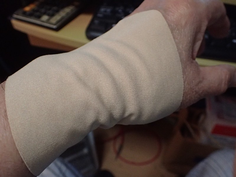 左手首の腱鞘炎。まあ昔からの持病なんですが、アンプ製作を頑張り過ぎて再発。