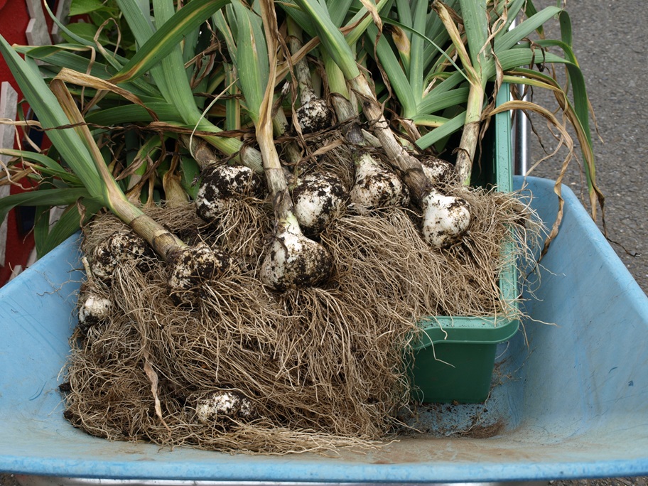 豊作です。去年と違って大きさが略揃っています。抜く時点からにんにくの匂いがプーン。