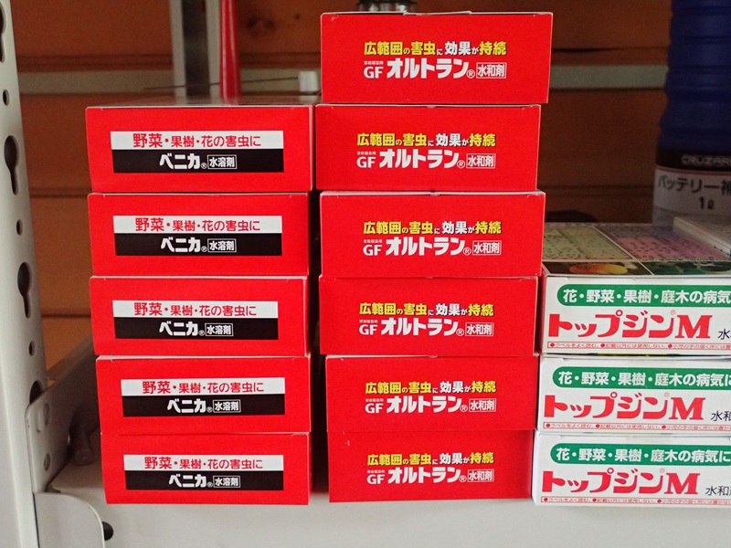 オルトランは1回の薬剤散布に1箱以上使います。
