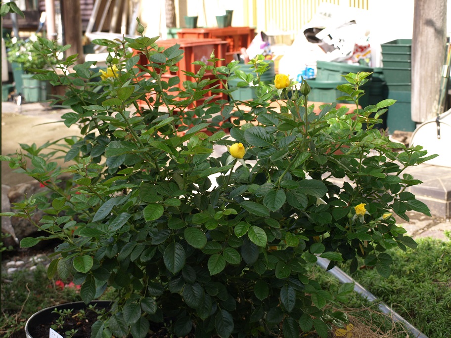 1本だけ残った鉢植えのバラ(ミニバラは除いて)。コイツがチョイヤバイ。