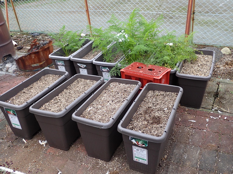 昨年収穫をして見ると、にんにくの根ってかなり深い所迄伸びるのが判りましたので、今年は人参と同じ深いプランターにしました。