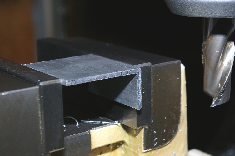 何か長いアルミのアングルをフライスにセットし、始まり始まり。