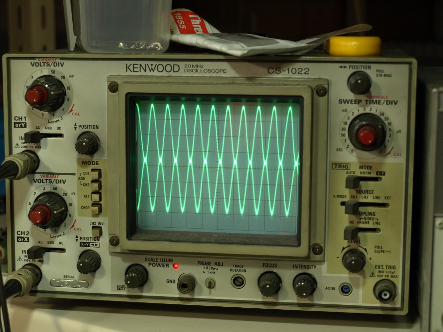 まず、順当に二次側コイルを正相出力で二つのコイルの同調が取れているかのチェック。