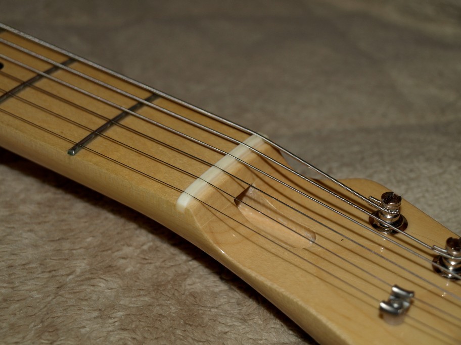 その為、ナットに近い6番弦は接触圧を稼げますが、遠い1番弦の接触圧は小さ過ぎる様に成りました。