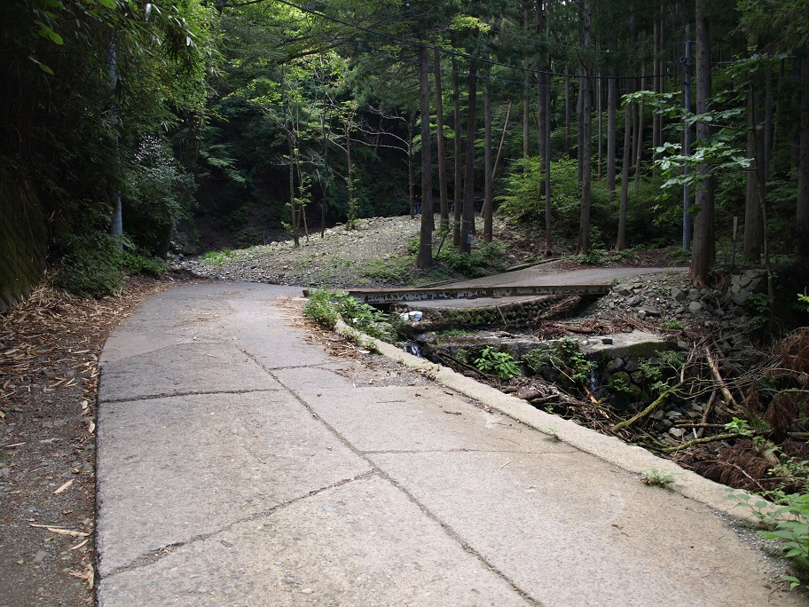 用水沿いの道。おかしい?この雨の後なのに通常よりも水量が少ない(と言うか殆ど流れていない)。
