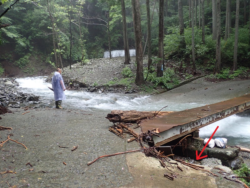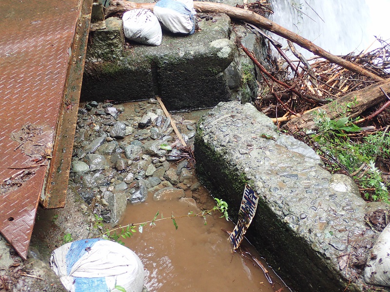 取水口は、土砂に埋もれて全然見えません。これでは用水路へ水が来ない訳です。
