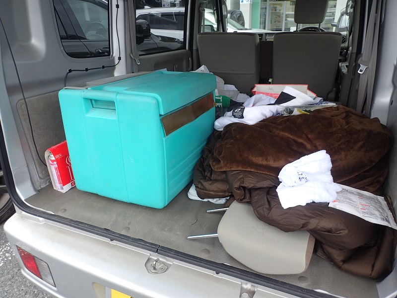 内部の様子です。車での走行中ですので中身は見事に散乱。