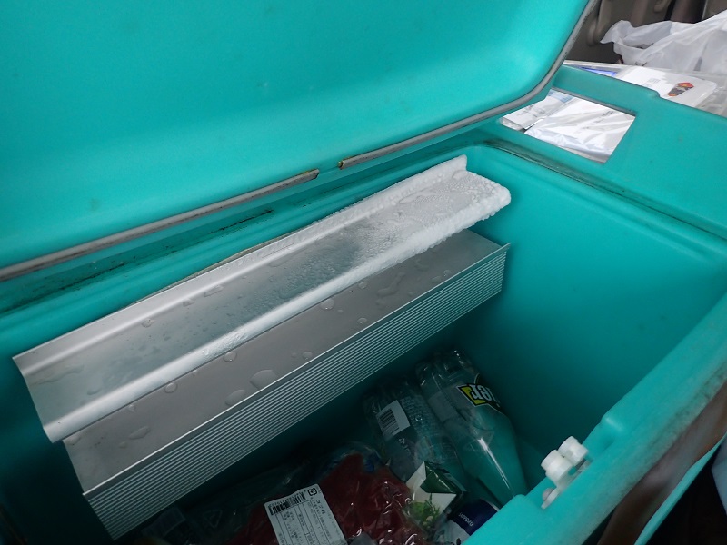 写真で判ります様に、冷却板には霜が着いて居ます。