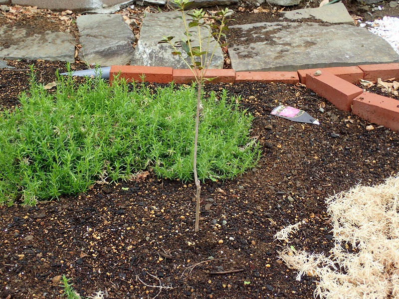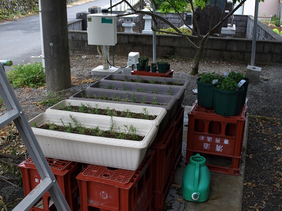 本当に小さなイロハモミジの苗木(こいつは時期外れも良い所だったので心配した)。
