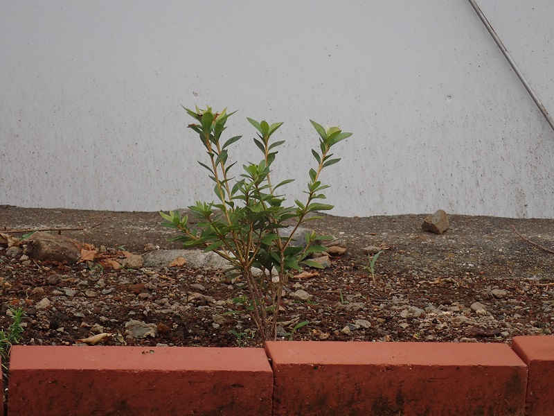 白梅の右側に植えた山つつじ。