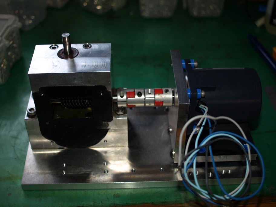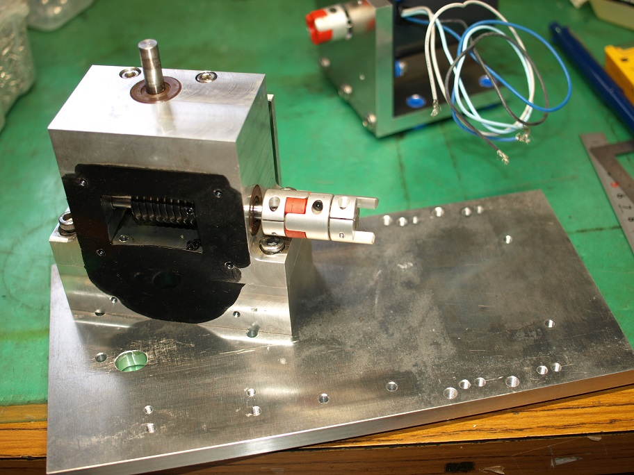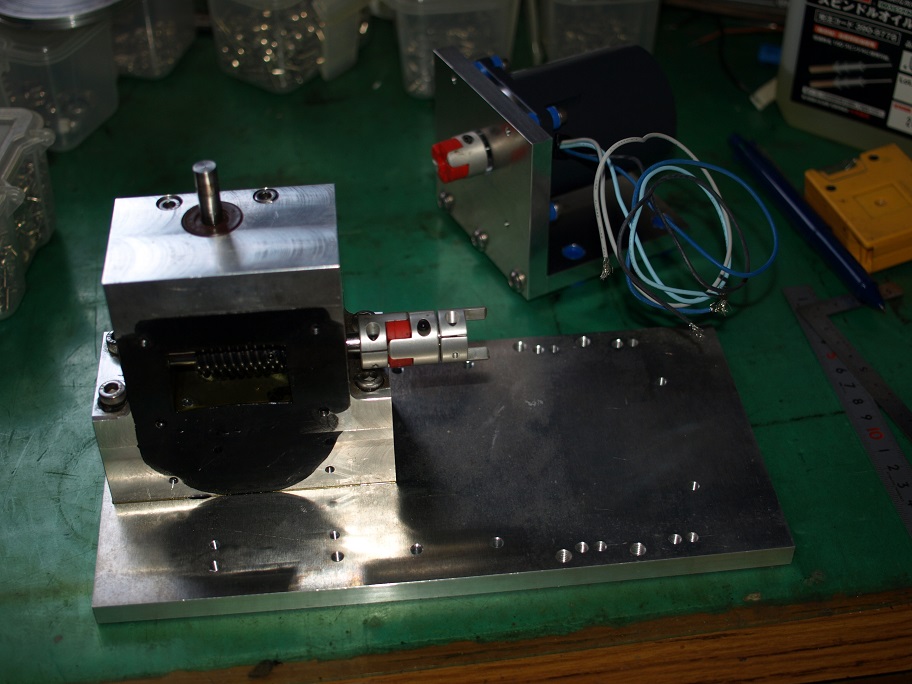 写真からお判りかと思うのですが、モーターは底板プレートに乗っているだけで取り付いていません。位置出しの確認です。